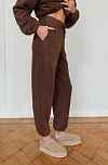 Стильные утепленные брюки из  плотного, двухстороннего, трикотажного полотна. Пушистый ворс напоминающий флис с лицевой стороны и гладкая, хлопковая, сторона к телу. Ткань хорошо сохраняет тепло, устойчива к деформациям.