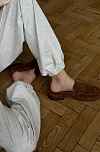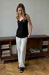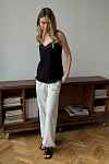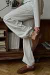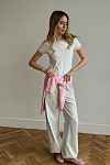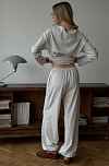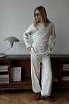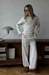 Брюки на комфортной, мягкой резинке. Можно носить в беременность (спустив под живот и отвернув резинку) и после родов. Носите с лонгсливом из той же ткани, кружевным топом, свитшотом или футболкой. После стирки брюки подсядут на 1,5-2 см в длину.
