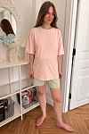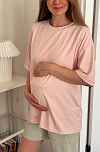 Футболка свободная для беременных и кормящих мам - пудровый