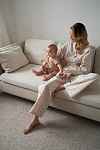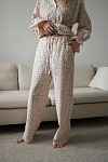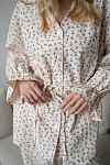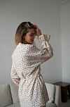 Наш хит - домашний костюм с белым воротничком теперь и в мягком хлопке фланели для случаев, когда хочется особенного тепла и уюта. Деликатный принт, рюши на манжетах, воротничок, тонкий пояс подчеркивающий талию и незаметные молнии для комфортного кормления малыша грудью - наслаждайтесь вашим красивым материнством.