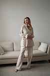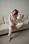 Костюм для дома из фланели - кремовый с синими цветами