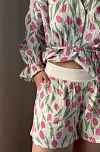 Костюм для дома с шортами - айвори с тюльпанами