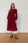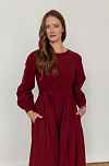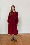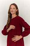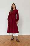 Параметры модели: платье в вишневом и темно-зеленом цвете: рост 177, грудь 84, талия 64, бедра 92, на модели платье в размере 42; платье в кремовом цвете: рост 170, грудь 84, талия 60, бедра 90, на модели платье в размере 42.