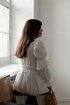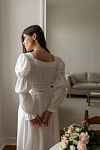 Всем поклонницам романтичного стиля посвящается. Невероятное платье Эмма из нежного, мягкого и воздушного муслина. Изящный вырез на груди, легкая шнуровка на спинке и потрясающие рукава сделают ваш образ незабываемым. Готовьтесь собирать восхищенные взгляды, комплименты и быть главной героиней любого мероприятия. Платье подойдет на небольшой срок беременности. На фото животик примерно на 6 месяцев.