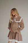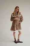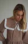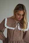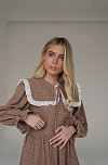 Восхитительное платье из мягкого, теплого хлопка фланели. Воротничок съемный, подъюбник вшит в линию талии. В комплекте идет тонкий поясок. При желании, можно подчеркнуть талию. Благодаря свободному фасону, платье подойдет и на период беременности. А незаметные молнии в вытачках лифа сделают комфортнее жизнь кормящей мамы.