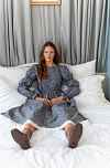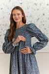 Платье Муза из фланели для беременных и кормящих мам - синий с цветами