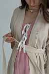 Платье для самого важного дня - первой встречи с вашим малышом. Никто из нас не знает, по какому сценарию могут пойти роды, но мы постарались предусмотреть разные варианты развития событий чтобы вы могли полностью расслабиться и думать только о том, что скоро вы увидитесь с малышом. Раздвижные крылышки на юбке спереди и сзади для комфортных осмотров, проживания схваток на фитболе и установки аппарата КТГ. Благодаря раздвижным крылья на юбке и чуть поднятой линии талии, ваш помощник в родах сможет получить легкий доступ к пояснице чтобы сделать массаж облегчающий схватки. И, конечно, мы предусмотрели вырез на груди с эстетичными лентами для комфортного кормления малыша грудью.