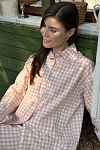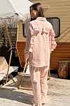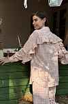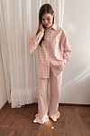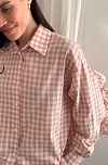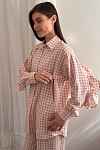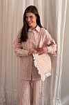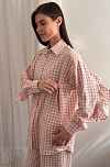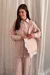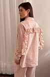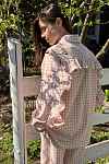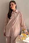 Рубашка из вареного хлопка с рюшей для беременных и кормящих мам - пудровый в клетку