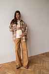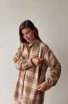 Рубашка в клетку с шерстью для беременных и кормящих мам - кэмэл